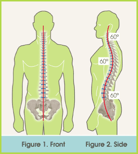 Your spine is the most important factor affecting your posture. In order to have the best possible posture (and health), your spine has to be in the best possible condition. From the rear your spine should be perfectly straight ( figure 1). From the side you should see three curves, each having a 60º arc (figure 2). Science, anatomy, and physics all observe that a 60º arc offers the strongest defence against the destructive forces of gravity and movement.